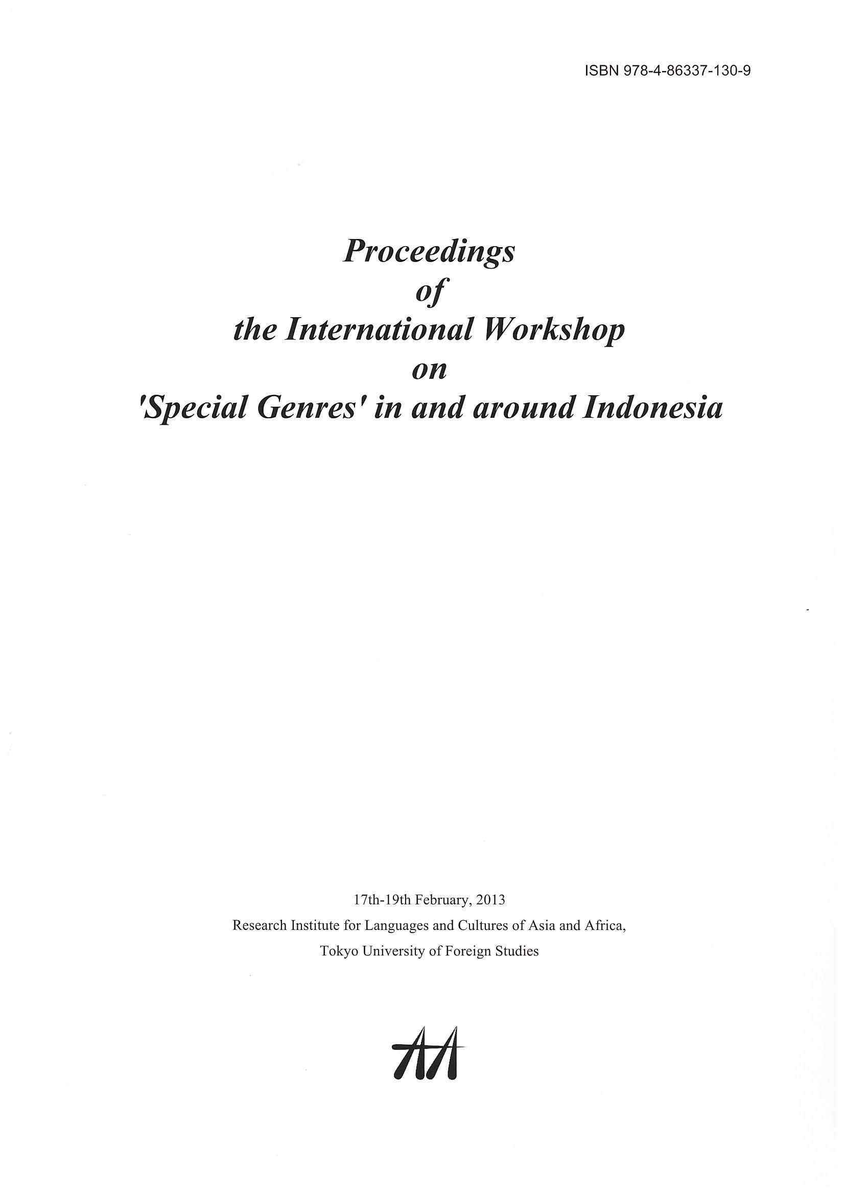 Proceedings of the International Workshop on ‘Special Genres’ in and around Indonesia: 17th-19th