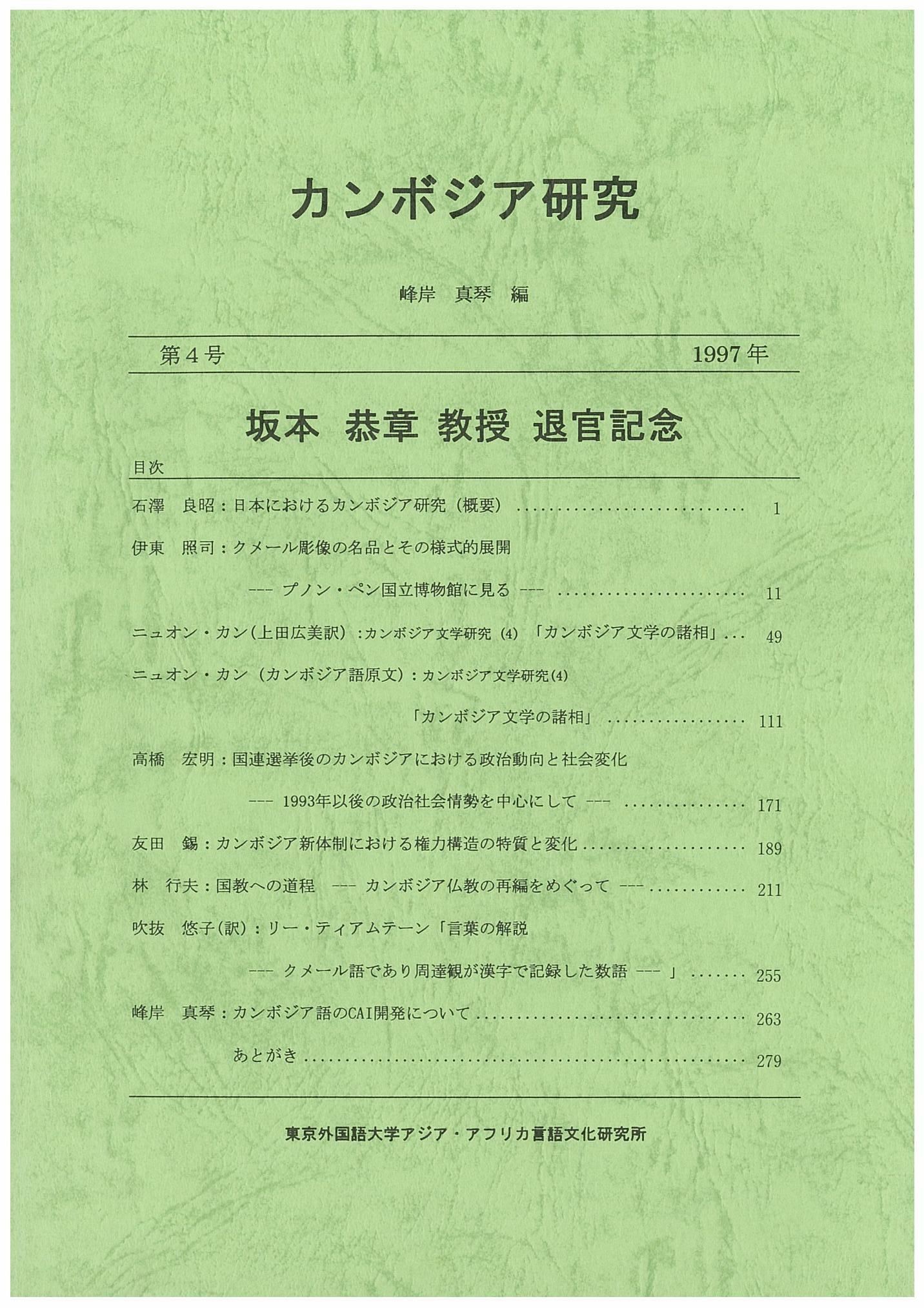 カンボジア研究 no.4 「坂本恭章教授退官記念」