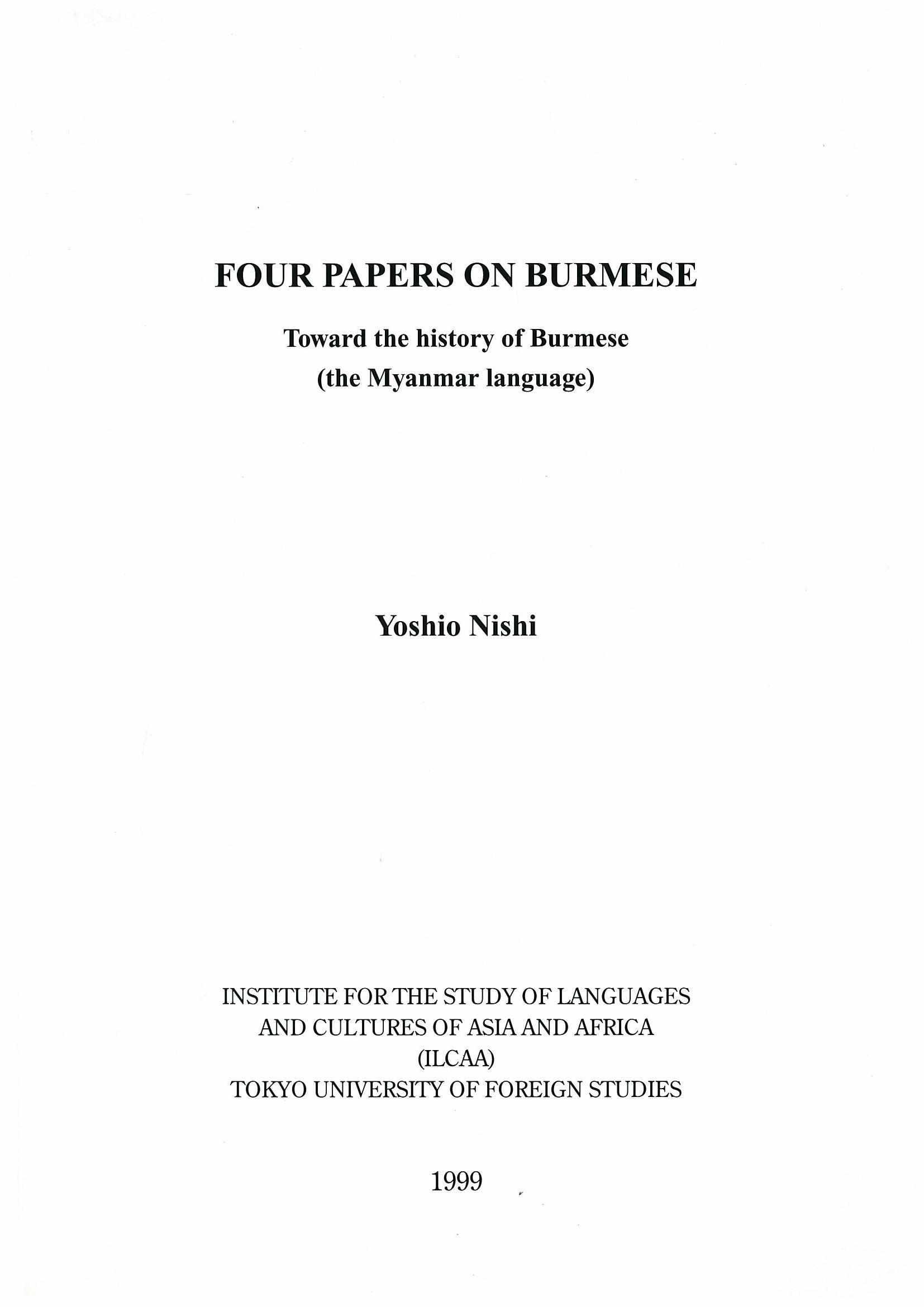 Four Papers on Burmese: Toward the History of Burmese (the Myanmar language)