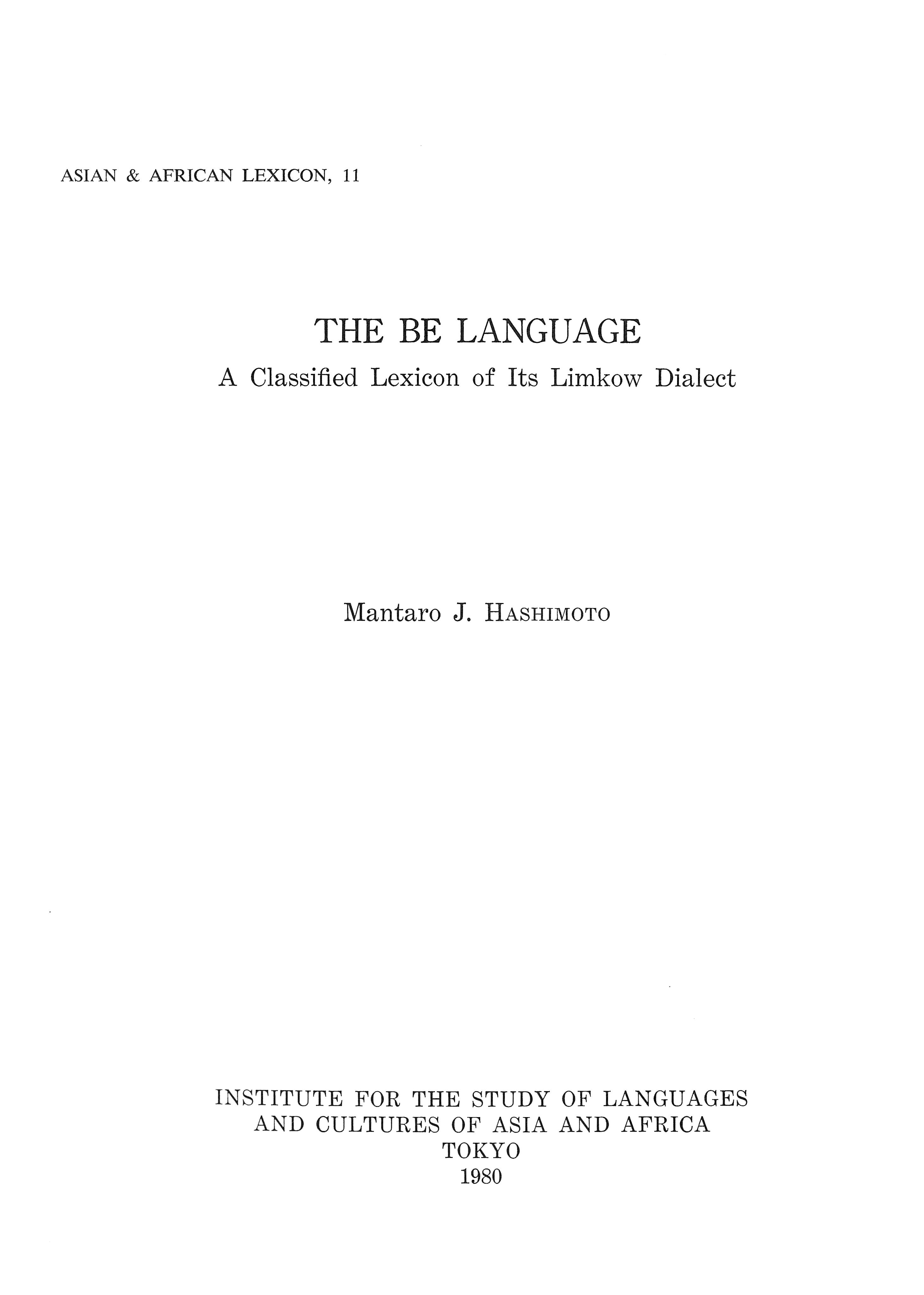 The Be Language: A Classified Lexicon of Its Limkow Dialect