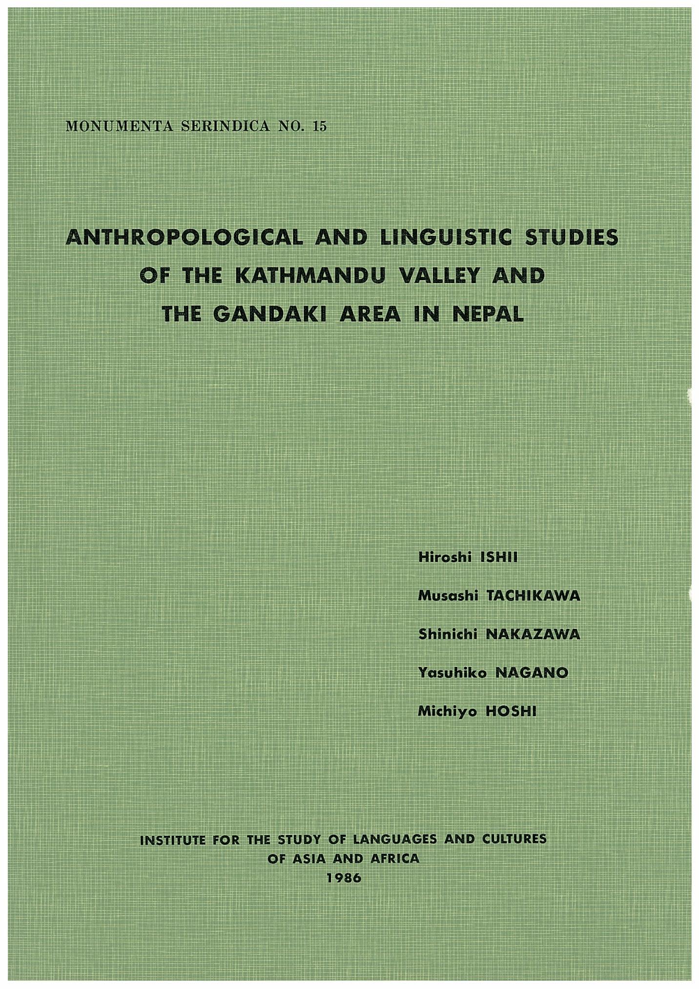 Anthropological and Linguistic Studies of the Kathmandu Valley and the Gandaki Area in Nepal