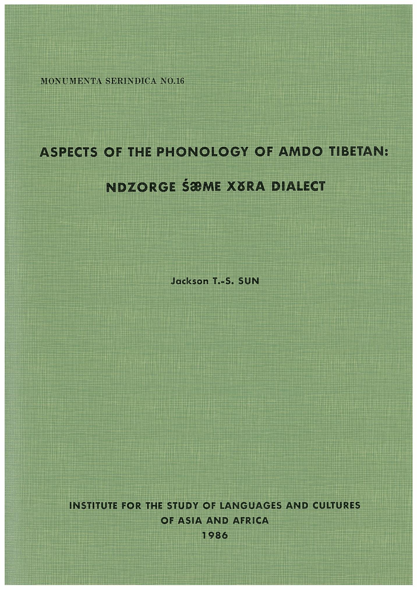 Aspects of the Phonology of Amdo Tibetan: Ndzorge Śæme Xɤra Dialect