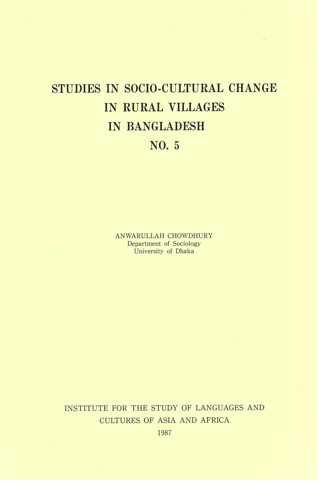 Studies in Socio-cultural Change in Rural Villages in Bangladesh no.5