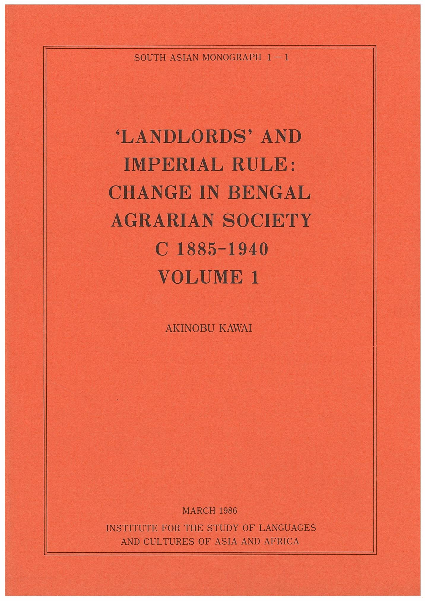 ‘Landlords’and Imperial Rule: Change in Bengal Agrarian Society c1885–1940 vol.1