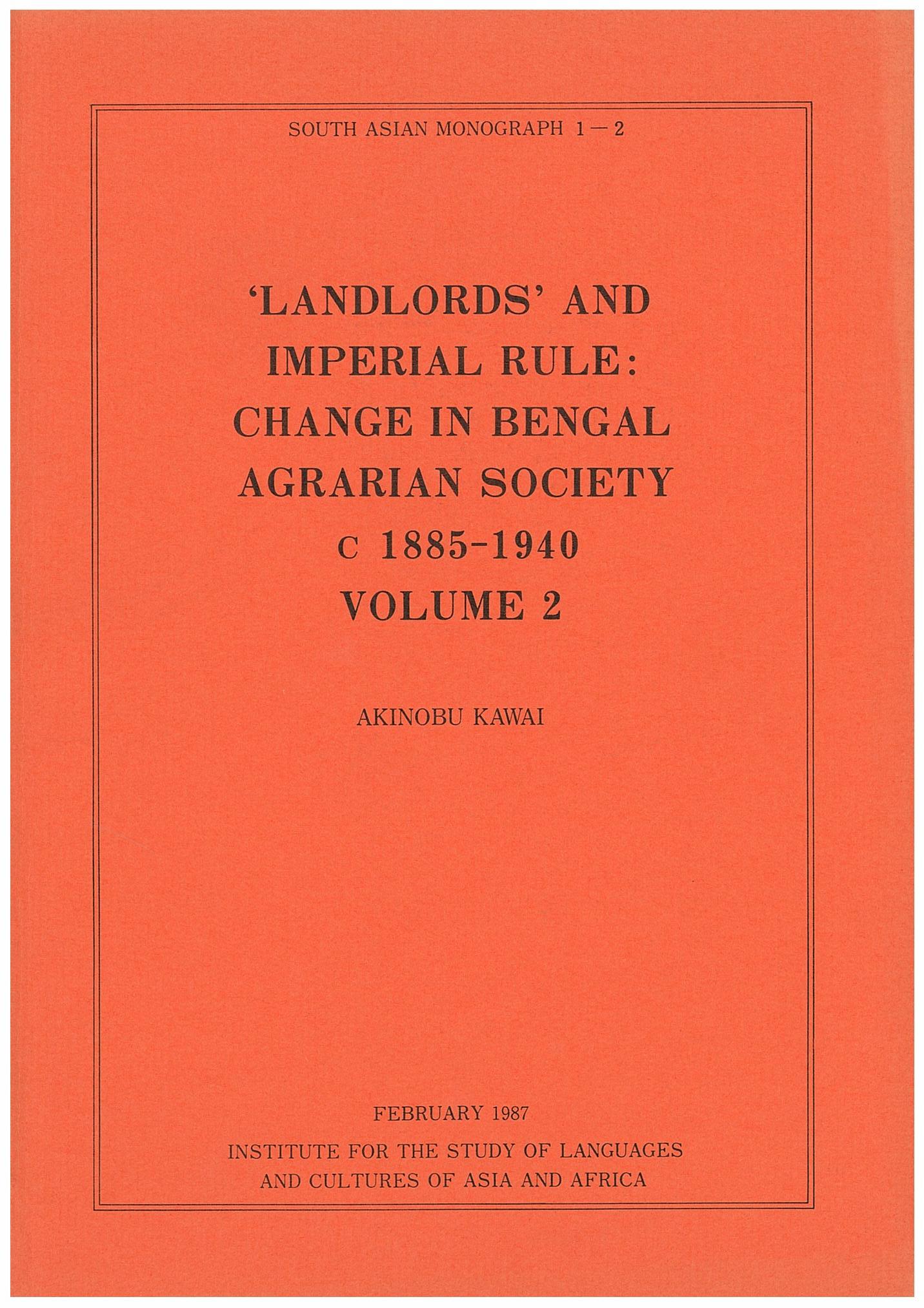‘Landlords’and Imperial Rule: Change in Bengal Agrarian Society c1885–1940 vol.2