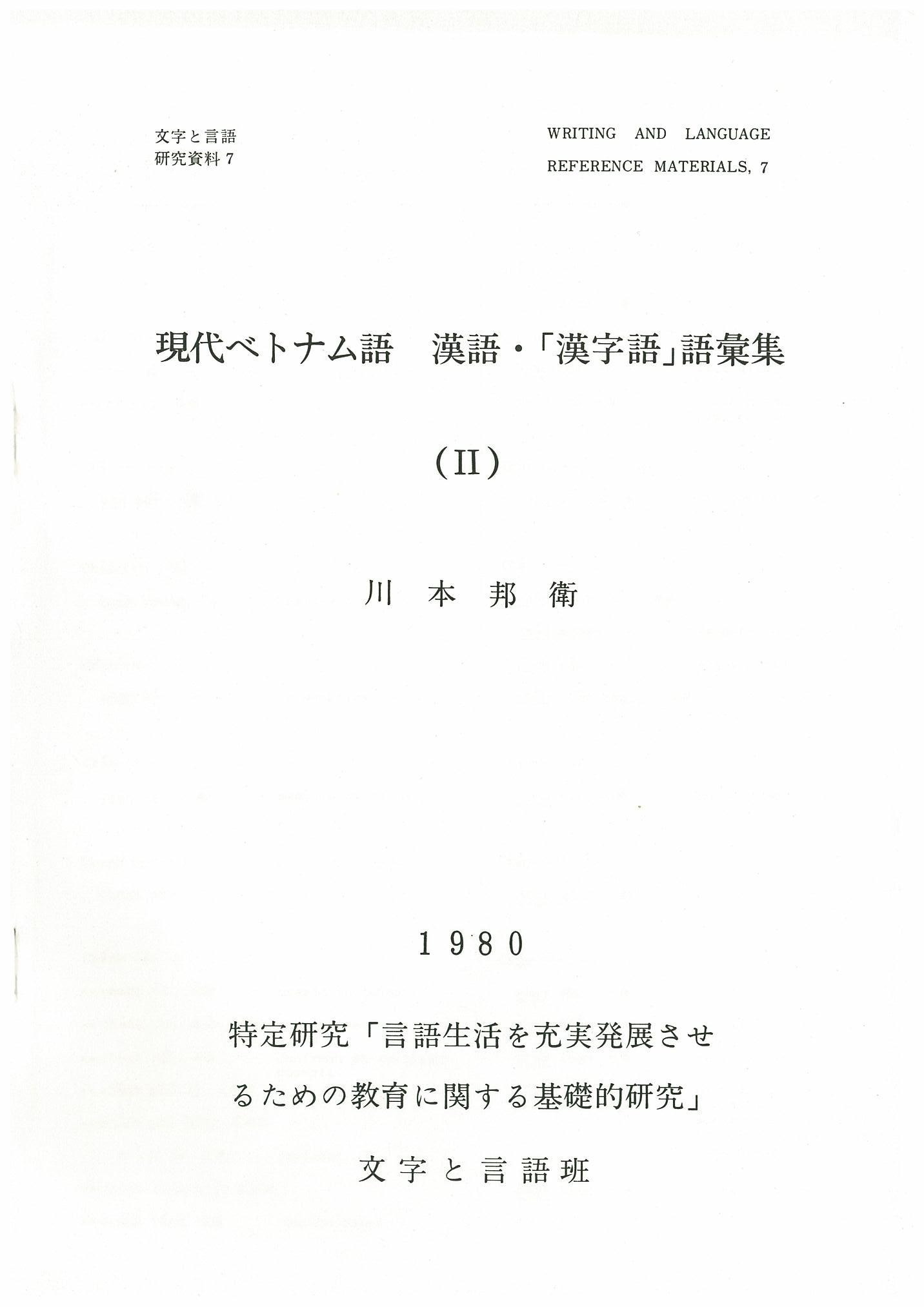 現代ベトナム語 漢語・「漢字語」語彙集(II)