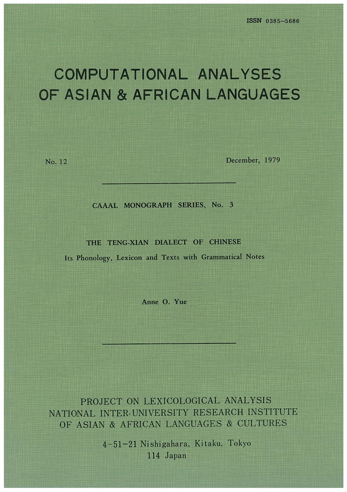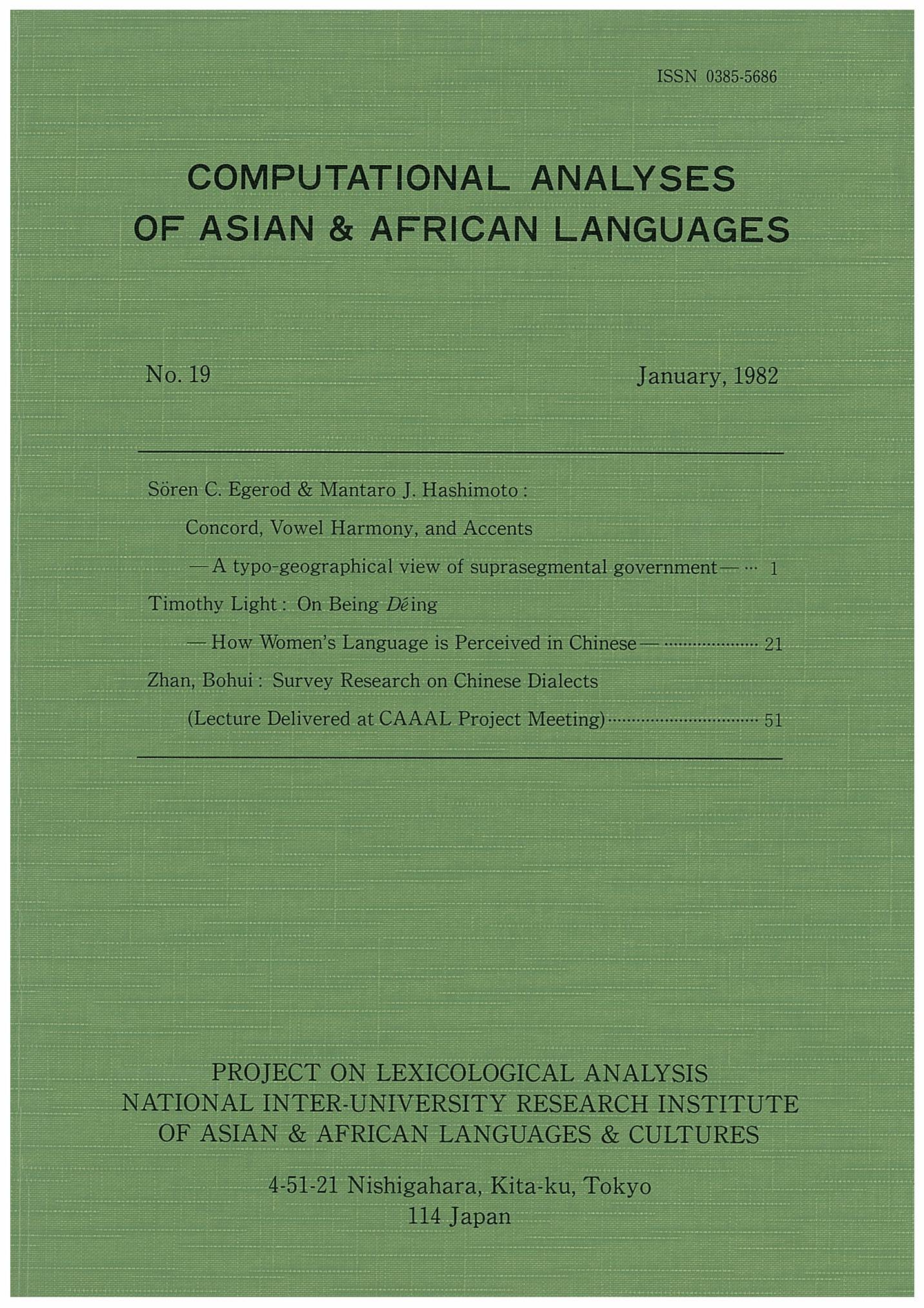 Computational Analyses of Asian and African Languages no.19