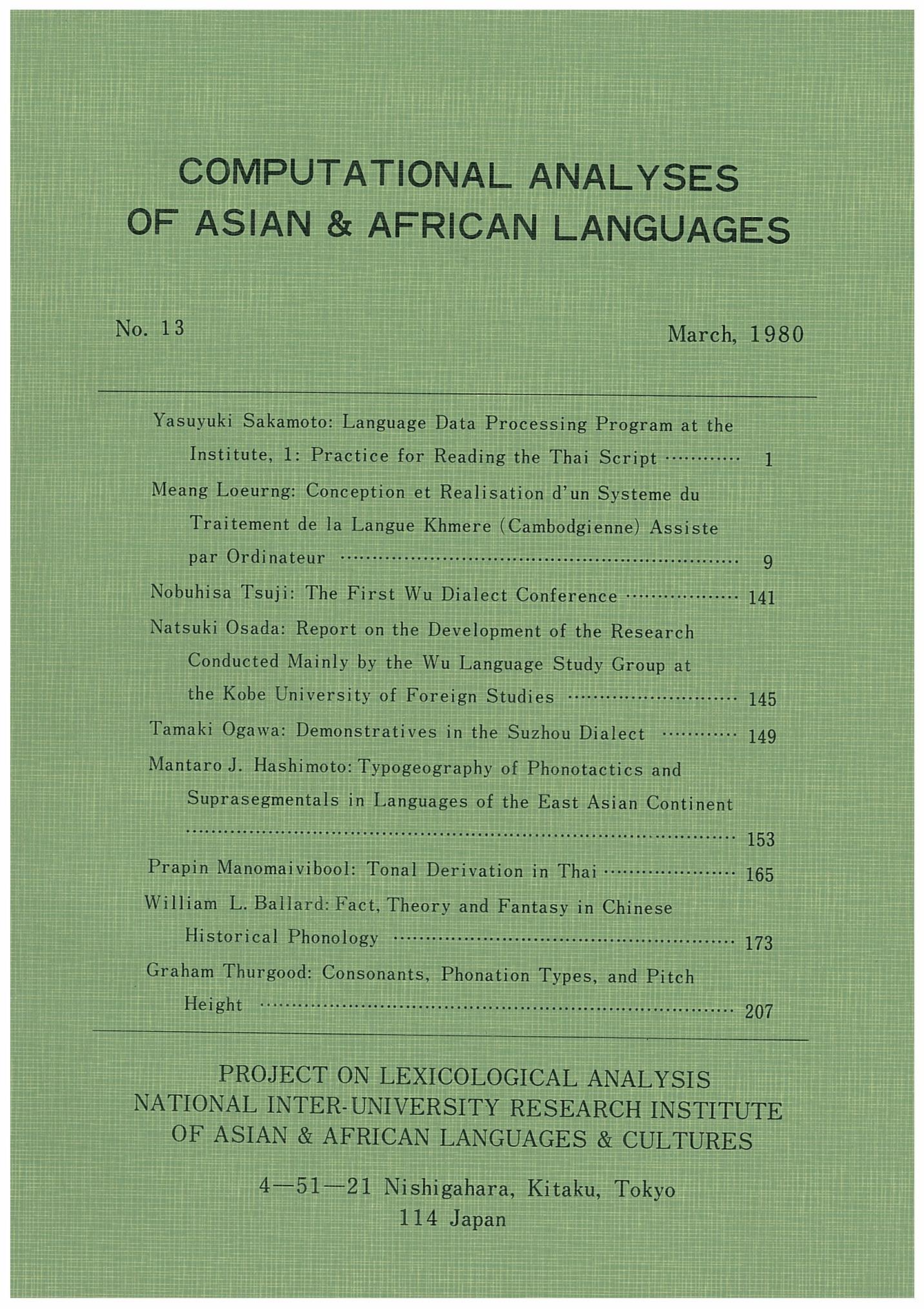 Computational Analyses of Asian and African Languages no.13