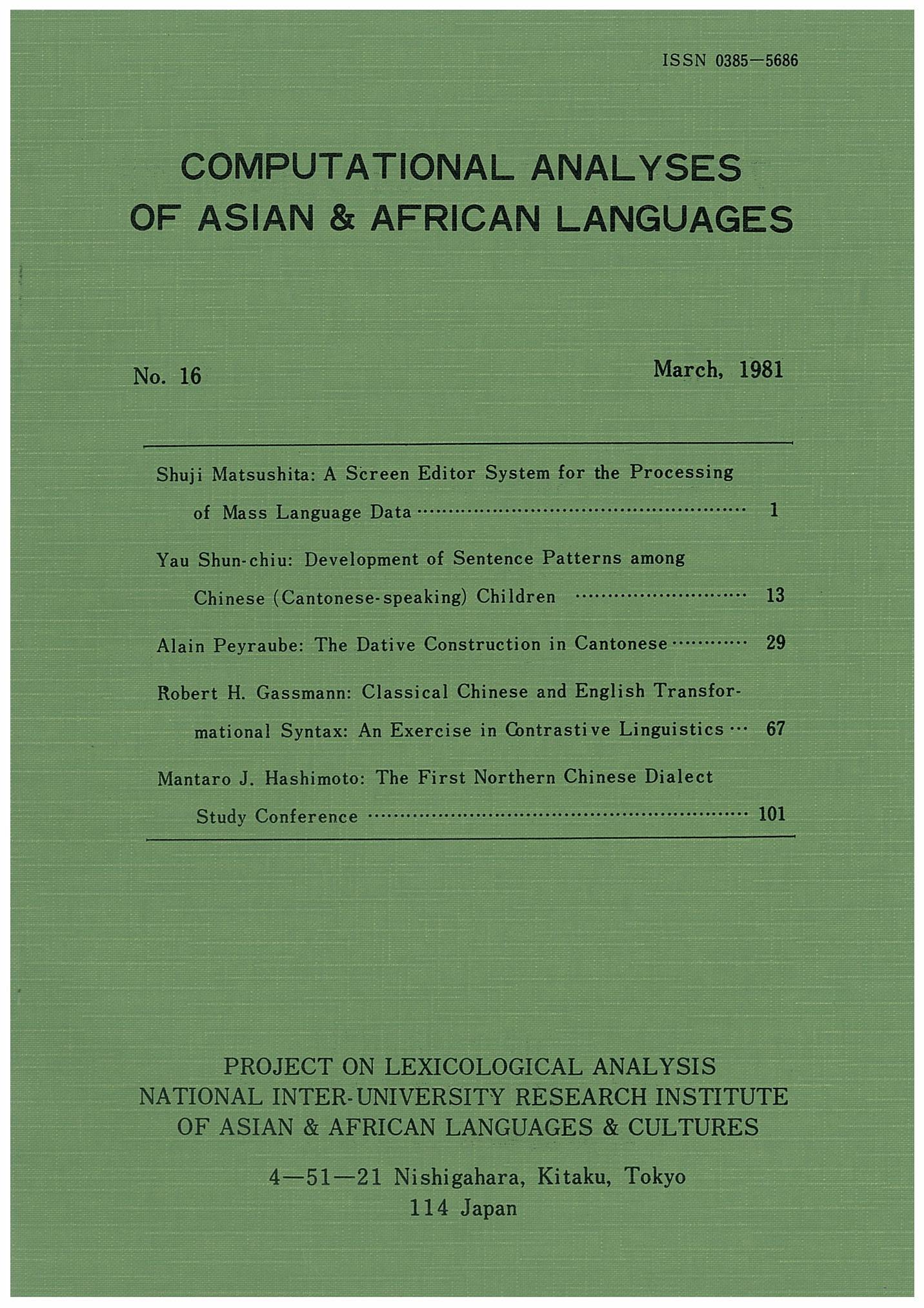 Computational Analyses of Asian and African Languages no.16