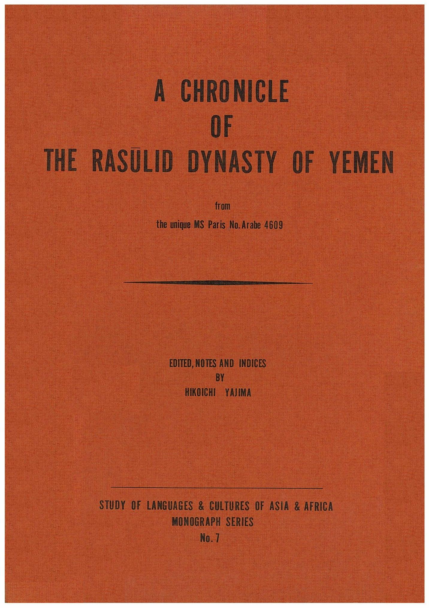 A Chronicle of the Rasūlid Dynasty of Yemen: From the unique MS Paris no.Arabe 4609