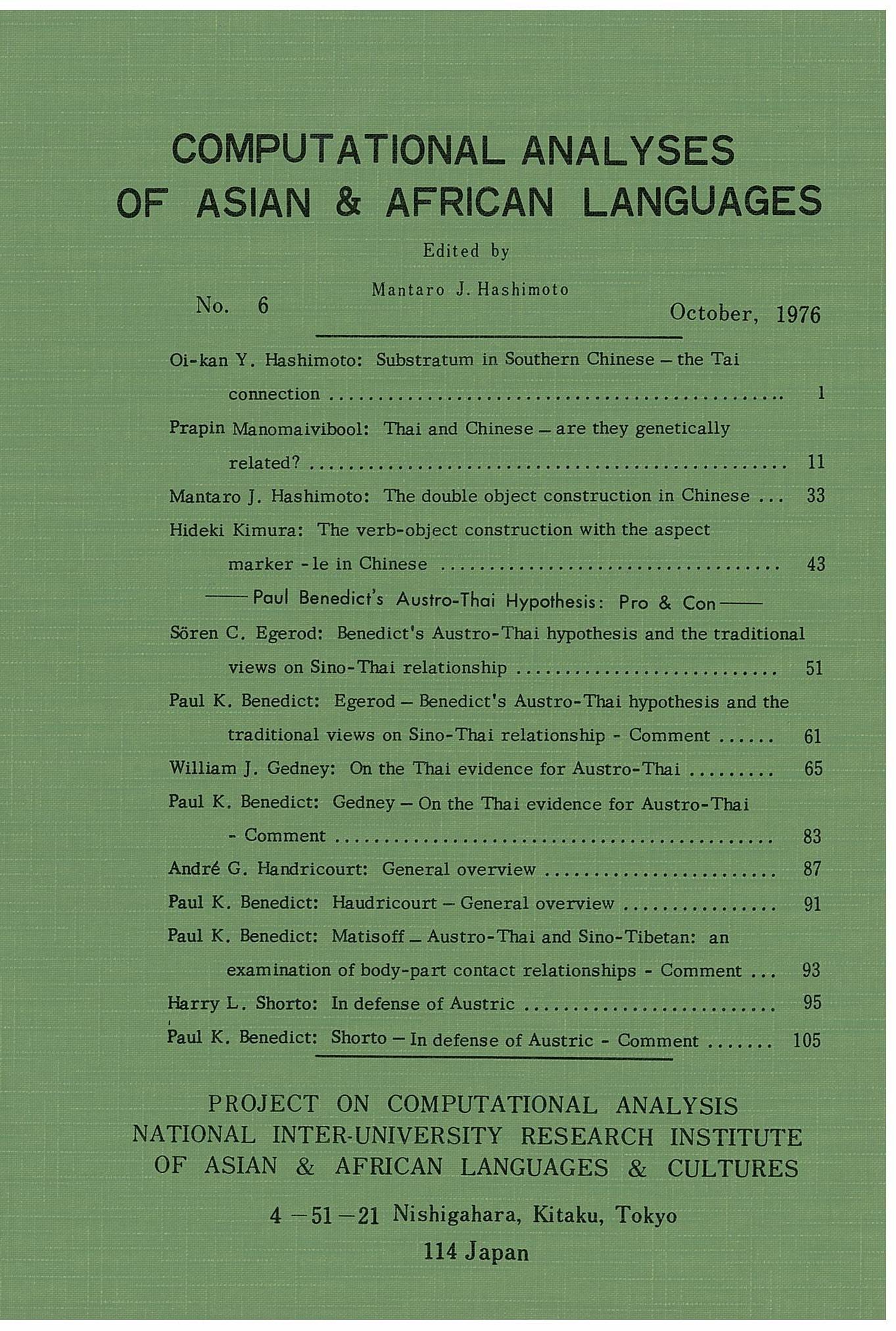 Computational Analyses of Asian and African Languages no.6