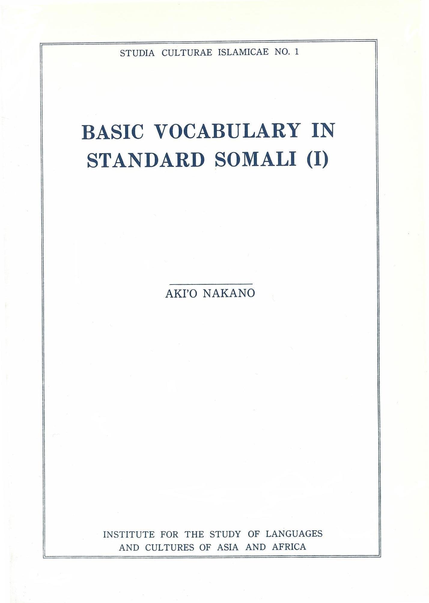 Basic Vocabulary in Standard Somali (I)