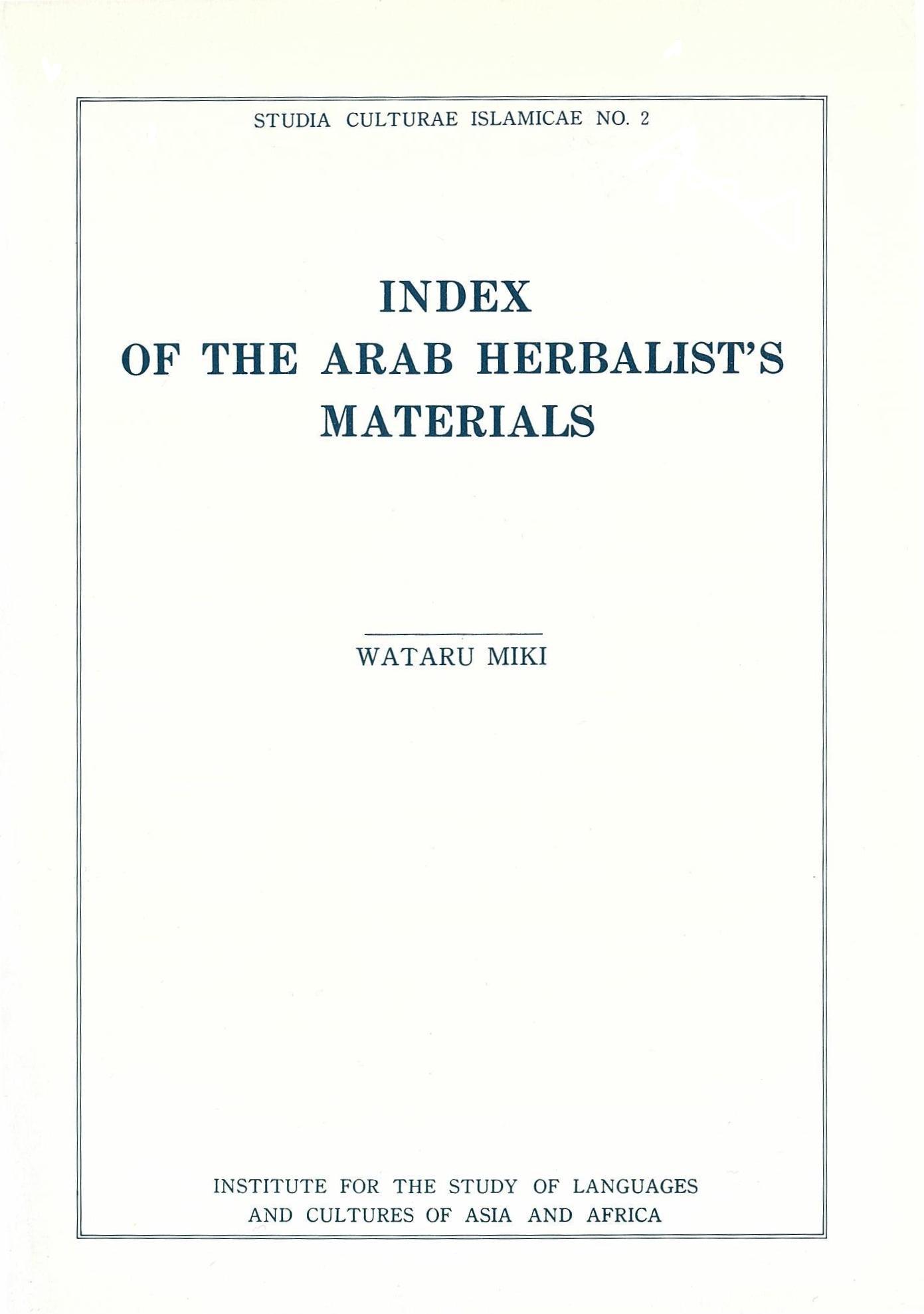 Index of the Arab Herbalist’s Materials