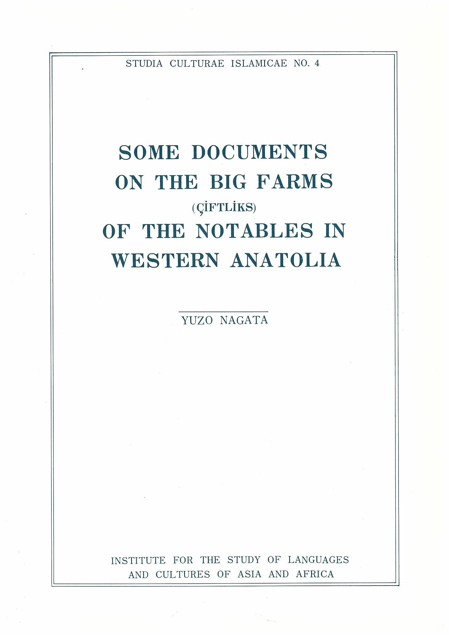 Some Documents on the Big Farms (Çiftliks) of the Notables in Western Anatolia