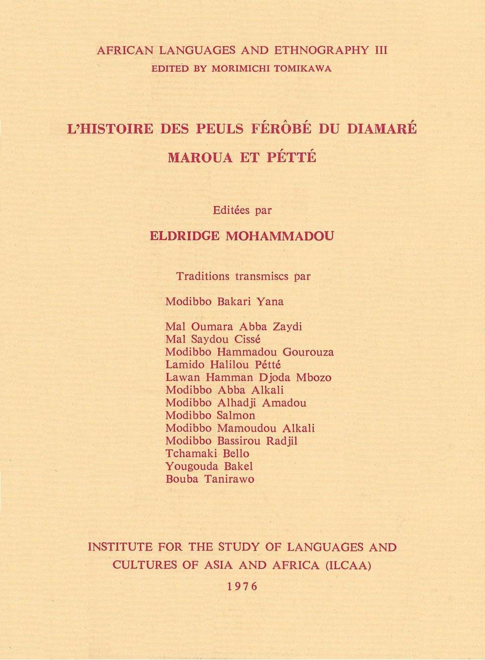 Ľhistoire des Peuls Férôbé du Diamaré, Maroua et Pétté