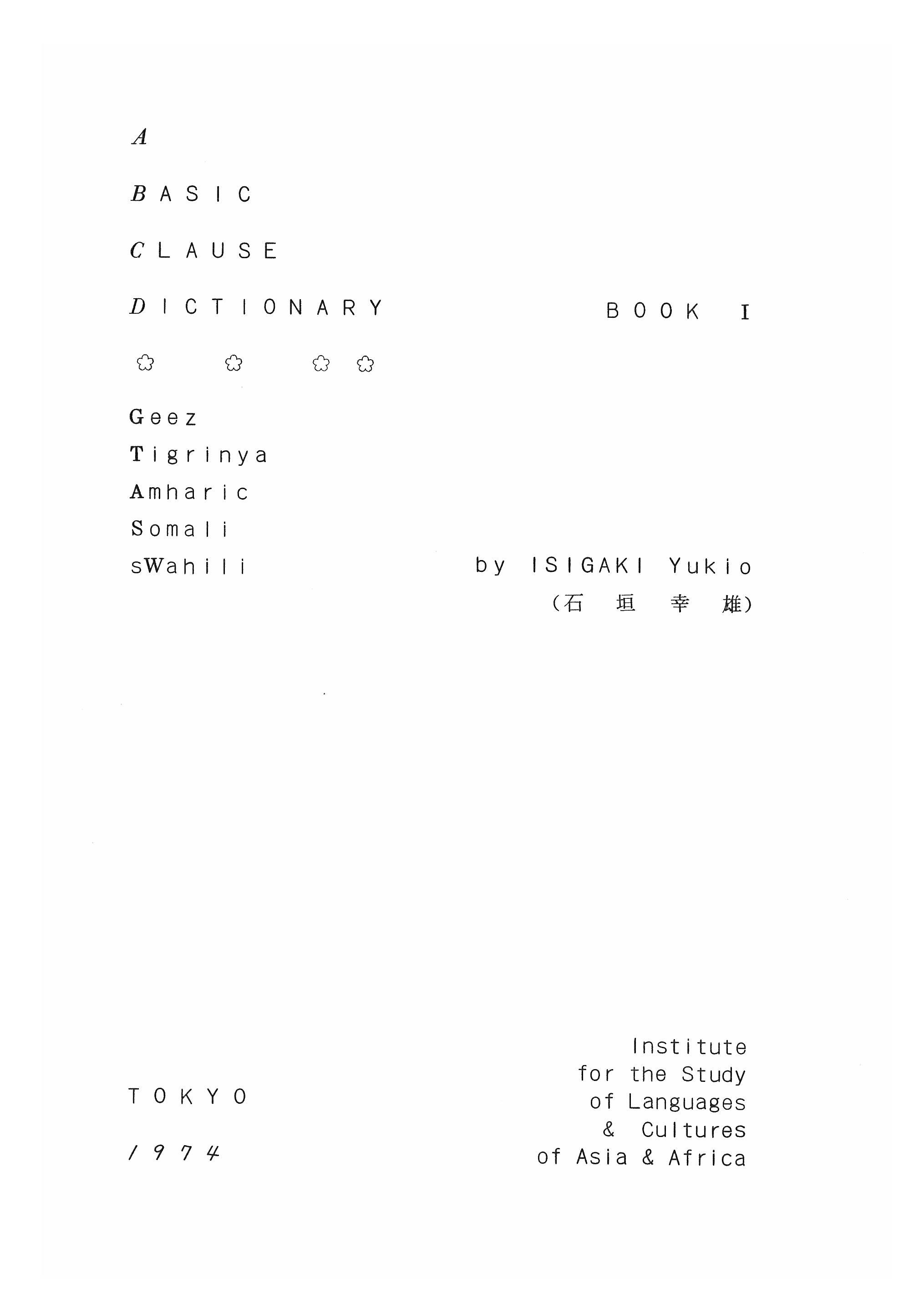 A Basic Clause Dictionary, Book I: Geez, Tigrinya, Amharic, Somali, Swahili