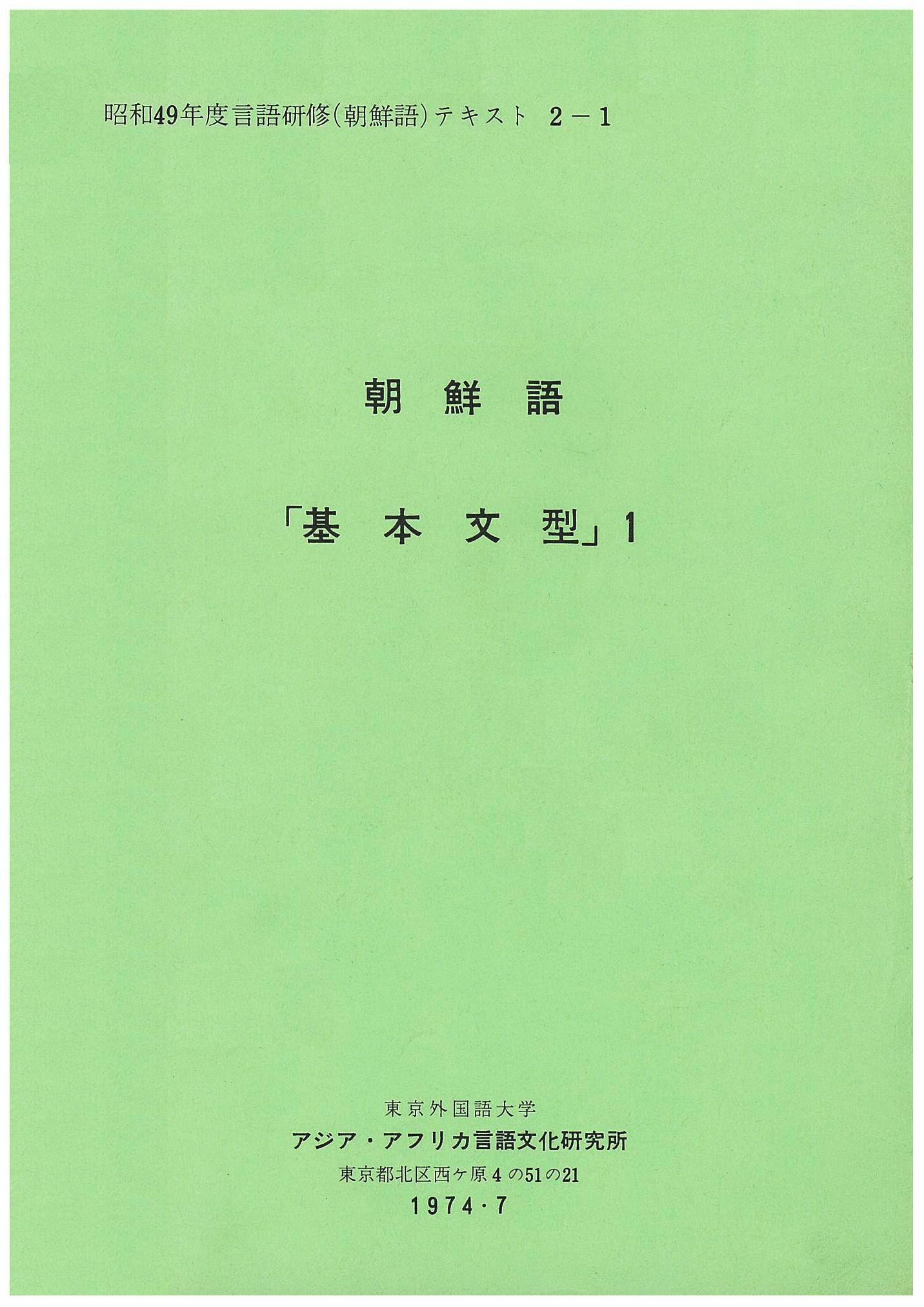 昭和49年度言語研修(朝鮮語)テキスト2 朝鮮語「基本文型」1