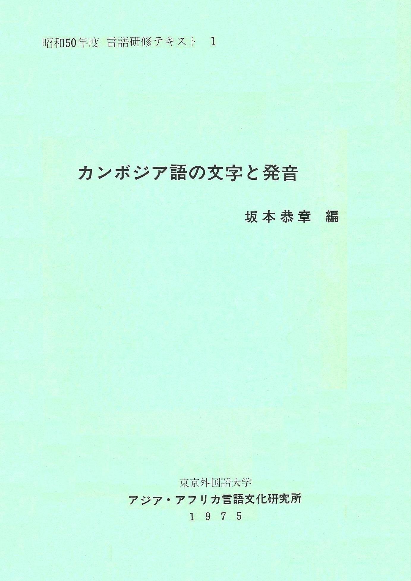 昭和50年度言語研修テキスト1 カンボジア語の文字と発音