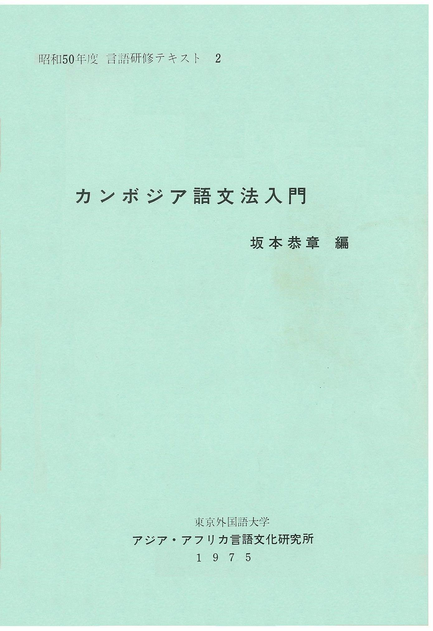昭和50年度言語研修テキスト2 カンボジア語文法入門