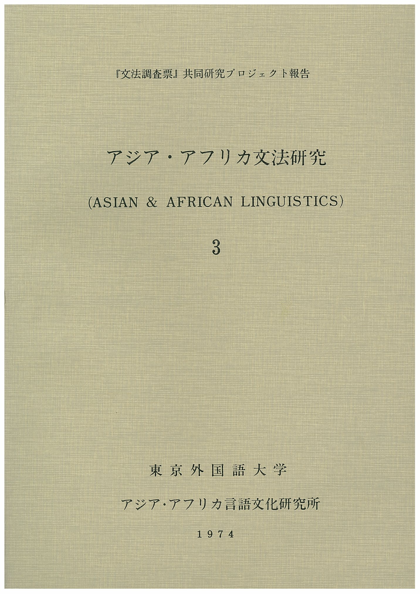 アジア・アフリカ文法研究3―「文法調査票」共同研究プロジェクト報告―1974