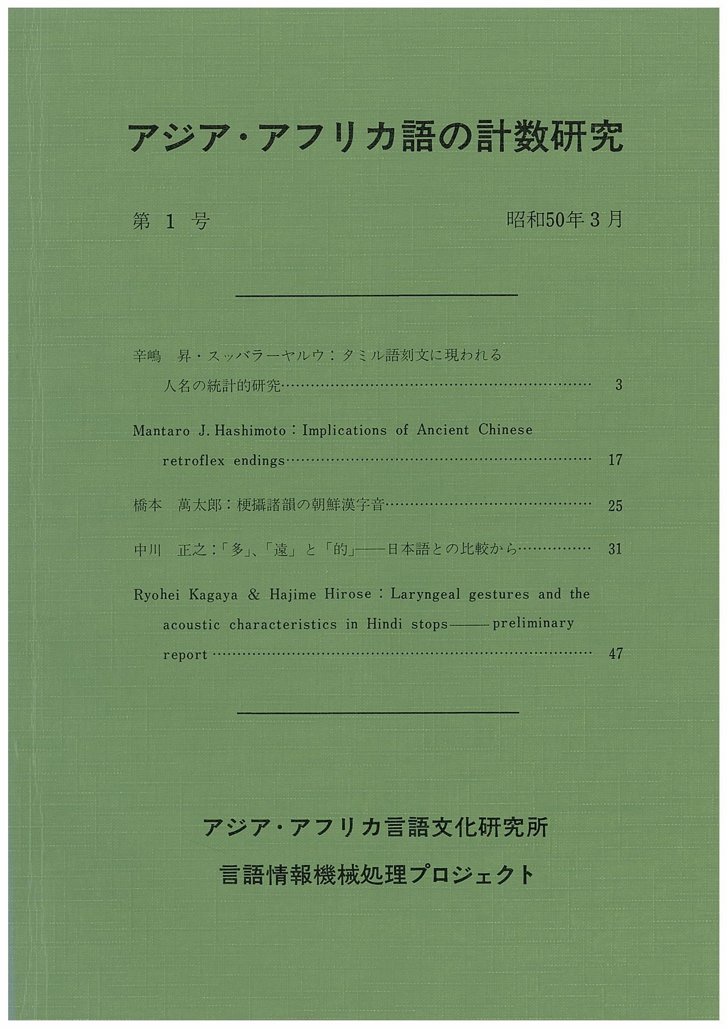 アジア・アフリカ語の計数研究第1号