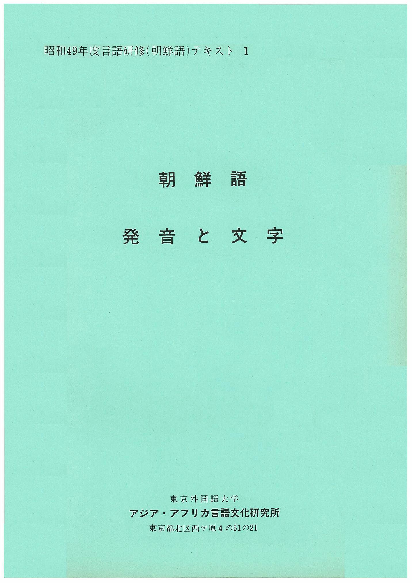 昭和49年度言語研修(朝鮮語)テキスト1 朝鮮語「発音と文字」