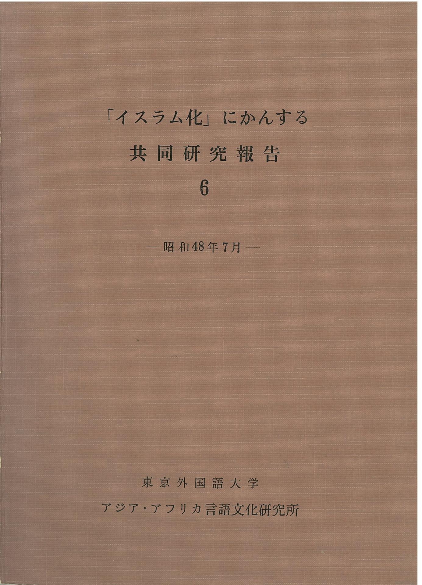 「イスラム化」にかんする共同研究報告 6―昭和48年7月―