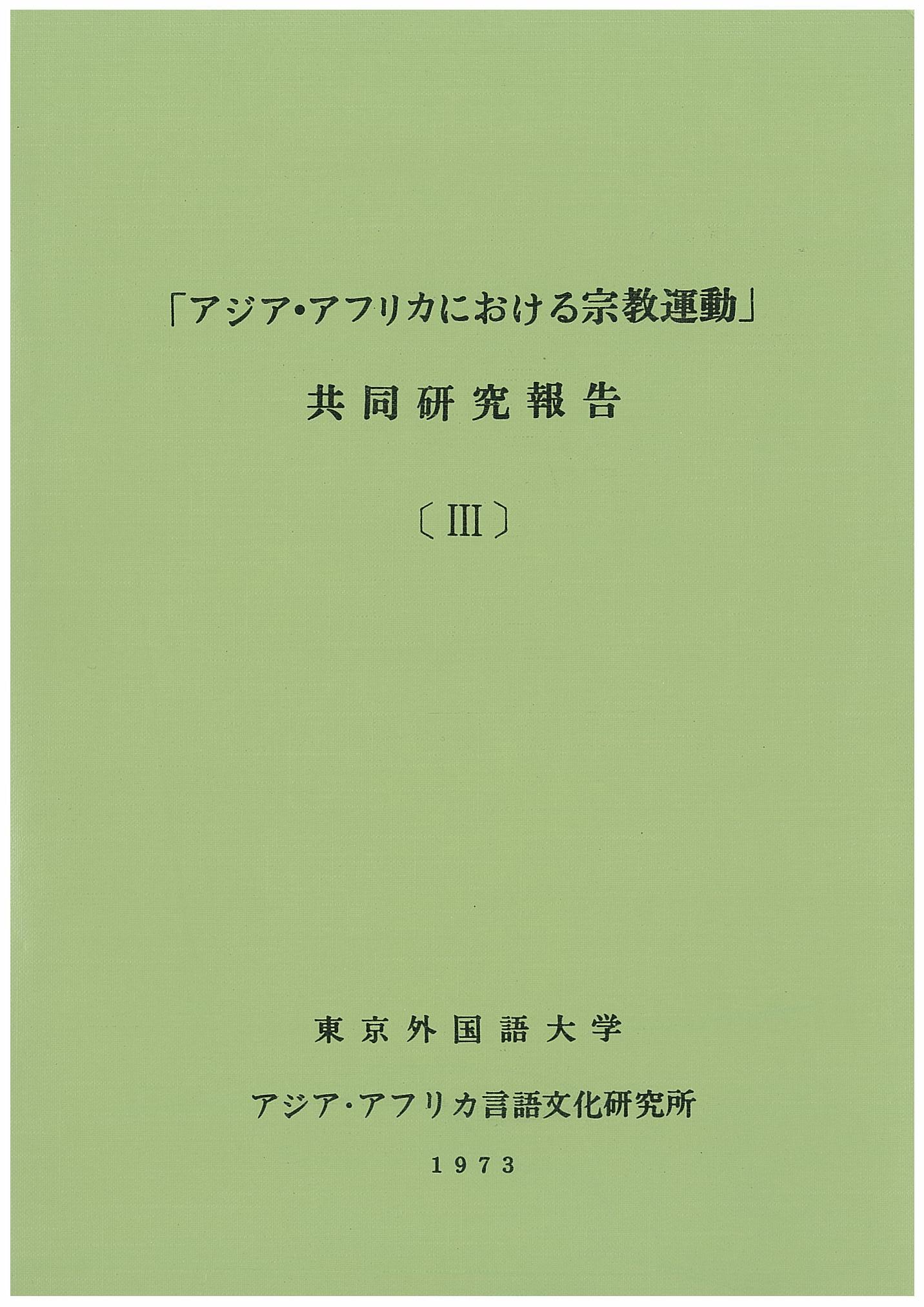 「アジア・アフリカにおける宗教運動」共同研究報告〔III〕
