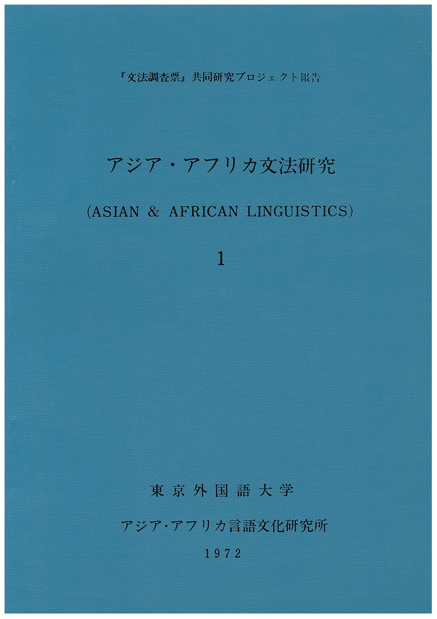 アジア・アフリカ文法研究1―「文法調査票」共同研究プロジェクト報告―1972