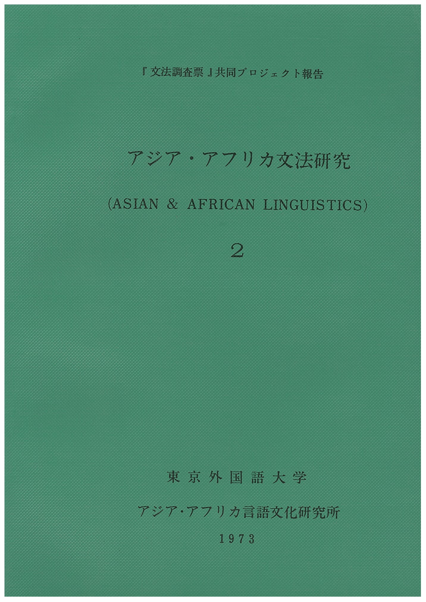 アジア・アフリカ文法研究2―「文法調査票」共同研究プロジェクト報告―1973